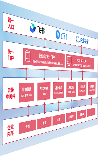 对协作平台提供支持服务,,,支持企业应用与协作平台对接,,,包含组织同步、、消息集成、、、、待办集成等。。。支持目前主流的协作平台:钉钉、、、企微和飞书。。。。
